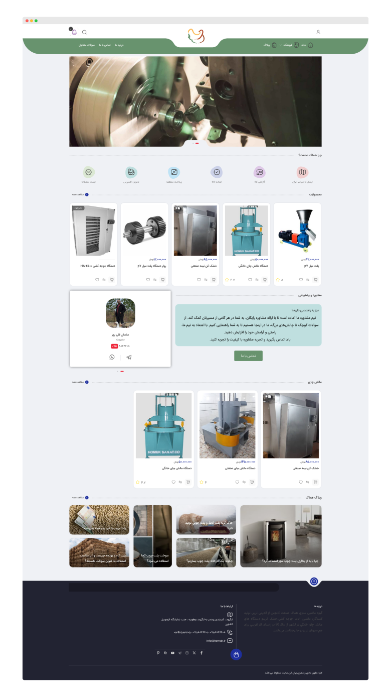 طراحی و توسعه وبسایت شرکت هماک صنعت با هدف معرفی برند، ارائه محصولات صنعتی و ایجاد بستری مطمئن برای فروش آنلاین و ارتباط با مشتریان. در این پروژه تمرکز بر طراحی حرفهای، اعتمادسازی و عملکرد سریع بوده است. خدمات و امکانات پیادهسازیشده شامل: