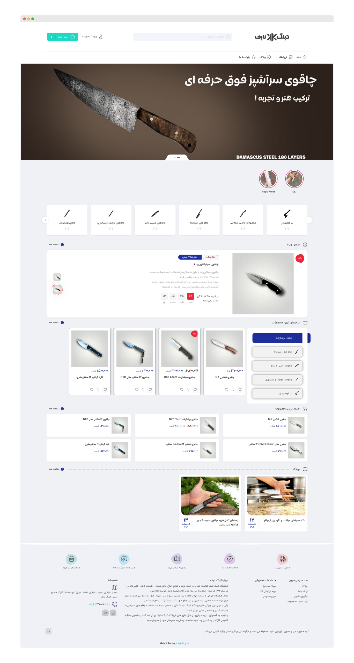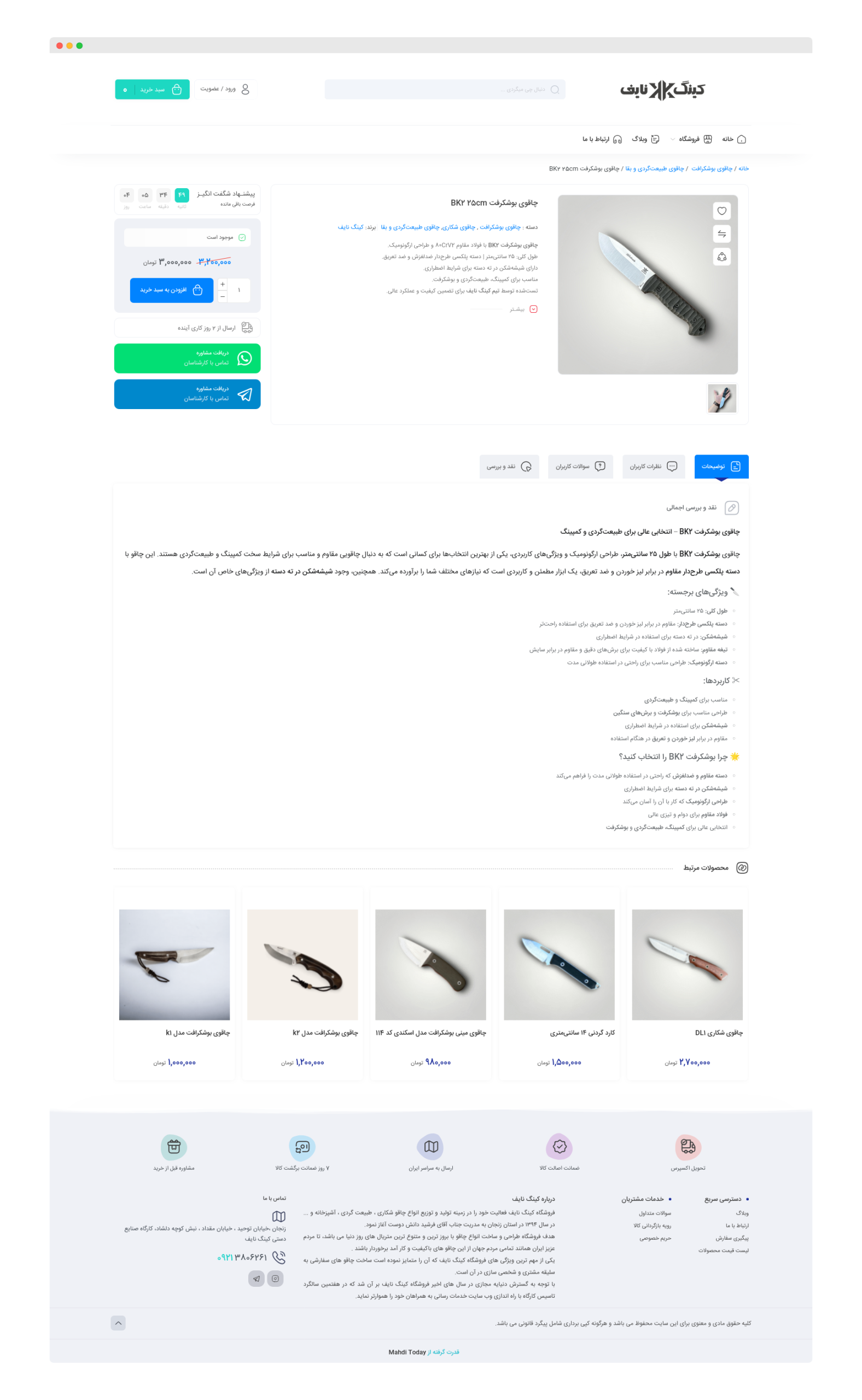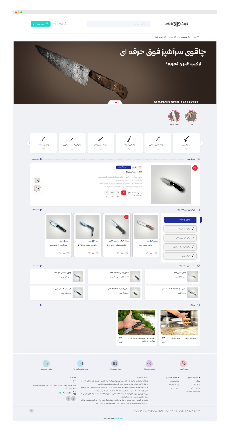 طراحی و پیادهسازی فروشگاه اینترنتی کینگ نایف با تمرکز بر فروش تخصصی انواع چاقوهای آشپزخانه، شکار، طبیعتگردی و کلکسیونی. این وبسایت با رعایت اصول طراحی فروشگاه حرفهای، عملکرد سریع و تجربه کاربری ساده و مؤثر، راهاندازی شده است. ویژگیهای کلیدی پروژه شامل: