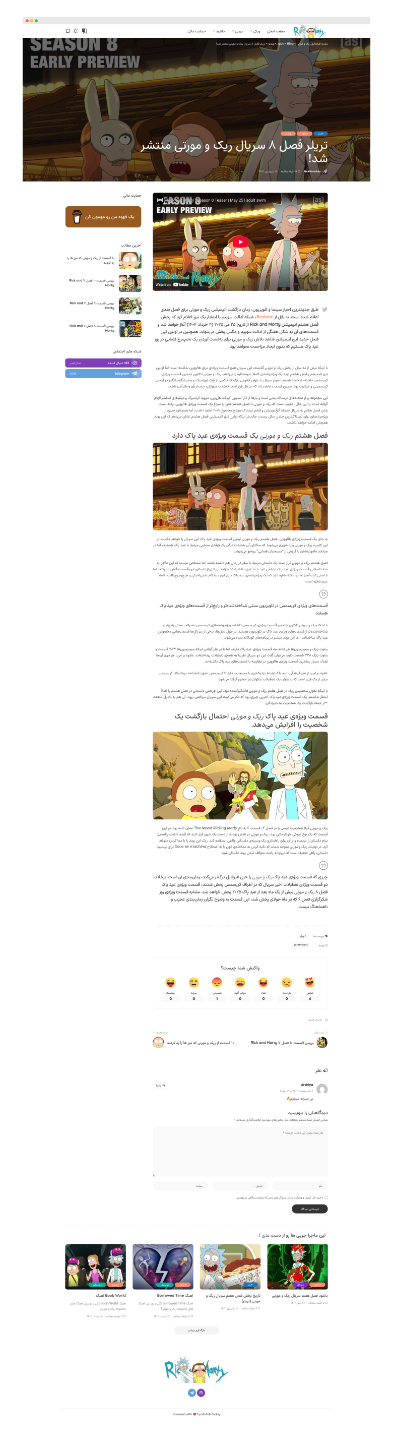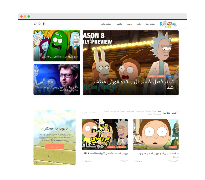 طراحی و پیادهسازی وبسایت اختصاصی هواداران سریال «ریک و مورتی» با تمرکز بر تجربه کاربری و سئوی بهینه. در این پروژه: